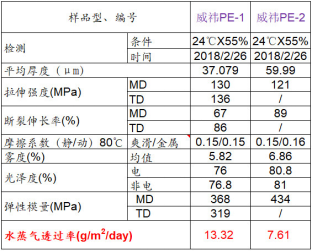 高强度PE膜采用了特殊分子结构的PE材料以及成膜工艺,使之具有高抗穿刺性、低温冷冻柔韧性、低雾度、高透明度的特点;同时,PE的材质特点,使高强度PE膜具有较低透水汽性(透湿性)。
